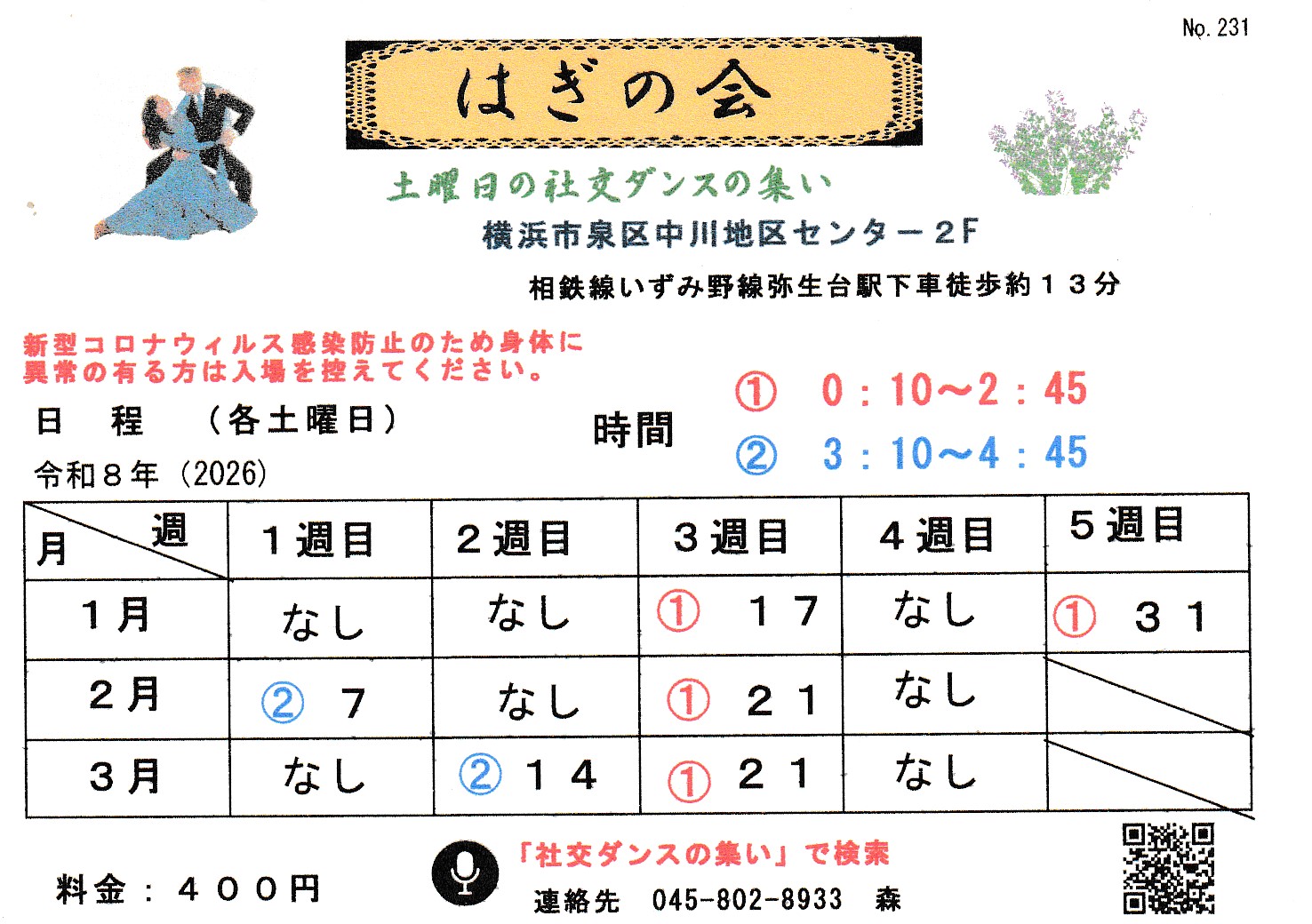 「赤い靴」ダンスパーティー 月間予定表はこちらをクリック