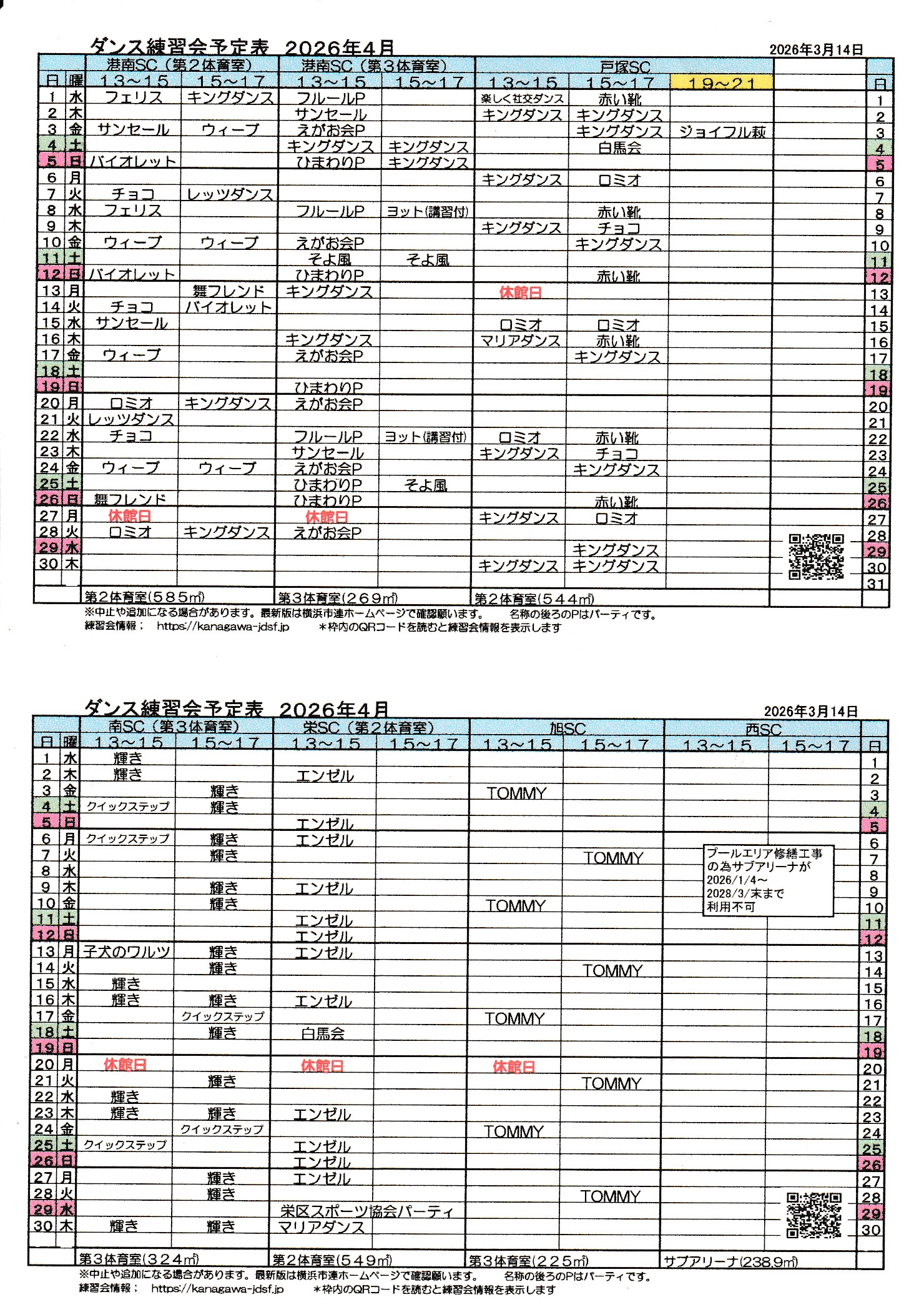 令和8年4月の練習会予定表 こちらをクリック〒2450018